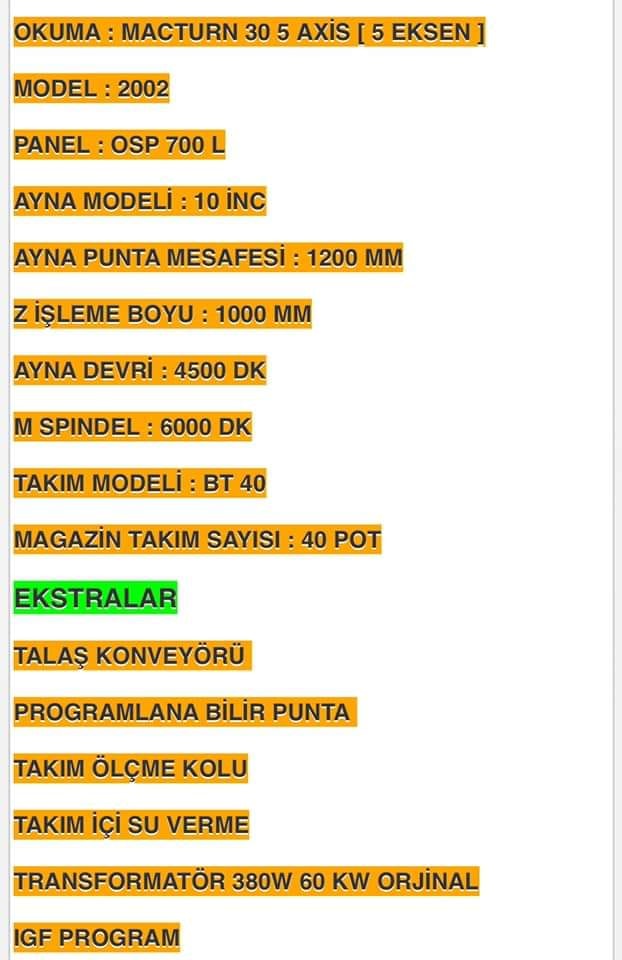 OKUMA 5 EKSEN MACTURN 30 CNC TORNA